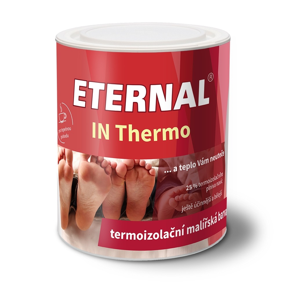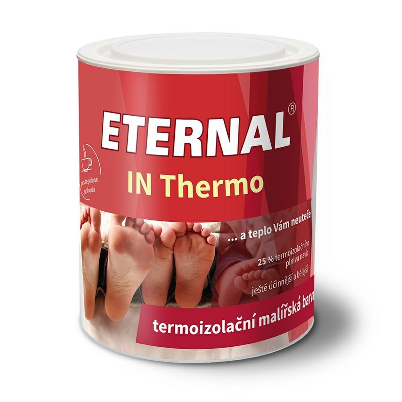 ETERNAL IN Thermo je speciální termoizolační nátěrová hmota pro interiéry, která díky obsahu skleněných mikrokuliček zvyšuje povrchovou teplotu stěn. Tím účinně brání kondenzaci vlhkosti a následnému vzniku plísní, eliminuje tepelné mosty a pocitové sálání chladu.