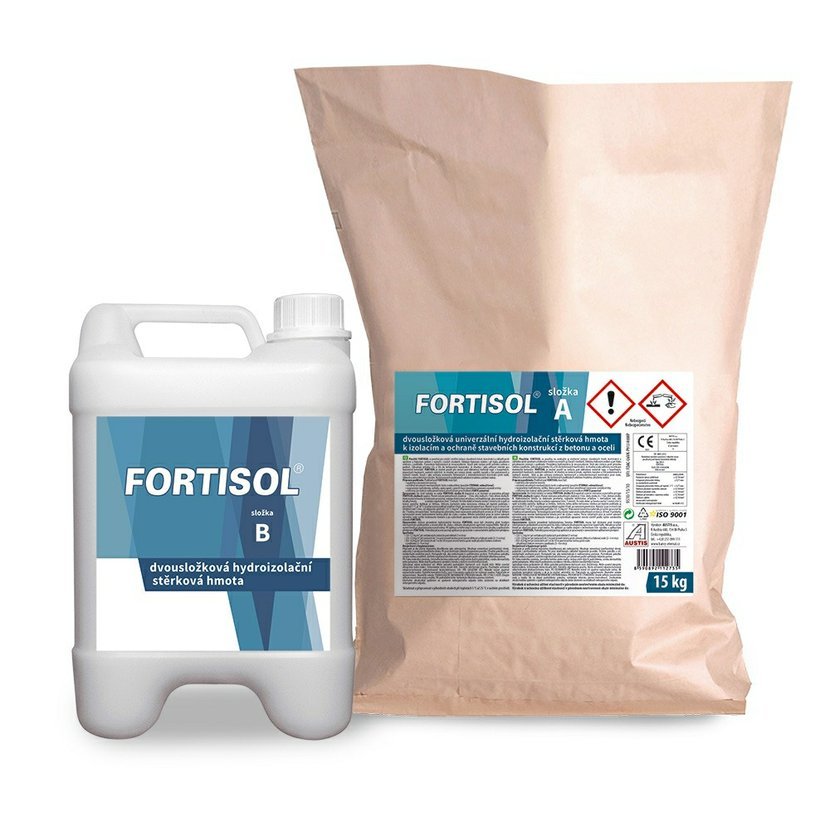 FORTISOL je dvousložková mrazuvzdorná hydroizolační stěrková hmota na bázi cementu a polymerů, určená k bezešvým izolacím stavebních konstrukcí z betonu a oceli. Vytváří vrstvu odolnou proti spodním i tlakovým vodám (až 50 m pod hladinou), chrání před agresivními vlivy atmosféry (CO2, SO2) a zabraňuje průniku radonu z podloží. Je ideální pro izolace základů, bazénů, koupelen, jímek a podzemních staveb.