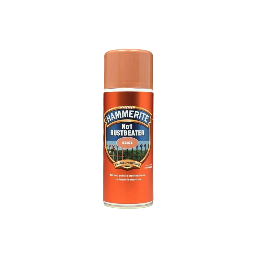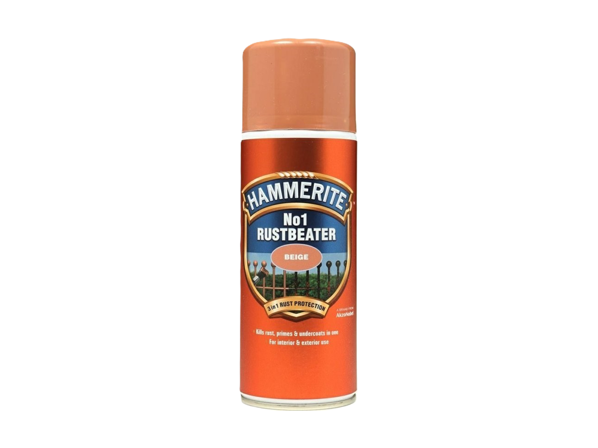 Hammerite No.1 Antikorozní sprej je základová a vrchní barva v jednom pro stabilizaci rzi a přímou aplikaci na holou i zkorodovanou ocel. Vytváří neprostupnou bariéru, která zastavuje proces rezivění a pomáhá vyrovnat drsné či nerovné povrchy. Je ideální pro silně zkorodované prvky nebo plochy vystavené extrémním vlivům počasí. Výsledný nátěr má hladký matný vzhled a je vhodný pro vnitřní i venkovní použití.