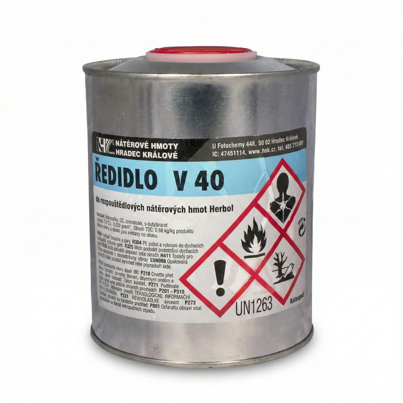 Herbol V 40 je speciální ředidlo určené pro úpravu viskozity nátěrových hmot na bázi alkydových pryskyřic (syntetických barev a laků). Díky svému složení zajišťuje nátěrovým hmotám optimální dobu otevření (schnutí), což napomáhá dokonalému slévání nátěru a omezuje tvorbu stop po štětci. Je rovněž ideální pro čištění pracovního nářadí a odmašťování povrchů před nátěrem.