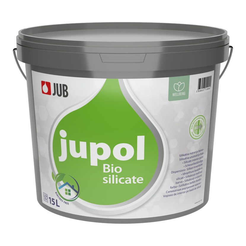 **JUPOL Bio Silicate** je ekologická vnitřní malířská barva vyrobená na bázi draselného vodního skla. Je navržena s ohledem na zdravé obytné prostředí, neobsahuje žádná organická rozpouštědla ani změkčovadla a je vysoce paropropustná. Díky svému přirozeně vysokému pH poskytuje dlouhodobou ochranu proti rozvoji stěnových plísní bez použití biocidních přísad, což ji činí vynikající volbou pro alergiky a prostory se zvýšenými nároky na hygienu. Barva se chemicky váže na podklad (prokřemenění), čímž vytváří velmi odolný a matný povrch, který je vhodný pro obývací pokoje, ložnice i historické objekty.