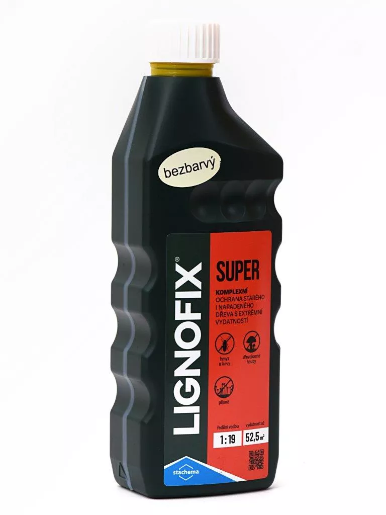 LIGNOFIX SUPER je kapalný přípravek s preventivním účinkem proti dřevokazným houbám (např. dřevomorka), plísním a preventivním i likvidačním účinkem na dřevokazný hmyz (např. červotoč, tesařík). Je určen k povrchové impregnaci napadeného dřeva v interiérech (např. střešní konstrukce, podlahy) a v exteriérech bez přímého a trvalého kontaktu se zemí (např. střešní podbití, dřevěné stavby, ploty) a také k ochraně zdiva a omítek proti prorůstání dřevokaznými houbami. Nesmí být použit na dřevo přicházející do přímého kontaktu s potravinami, krmivy a pitnou vodou ani k ošetření dřeva na výrobu dětského nábytku a hraček.