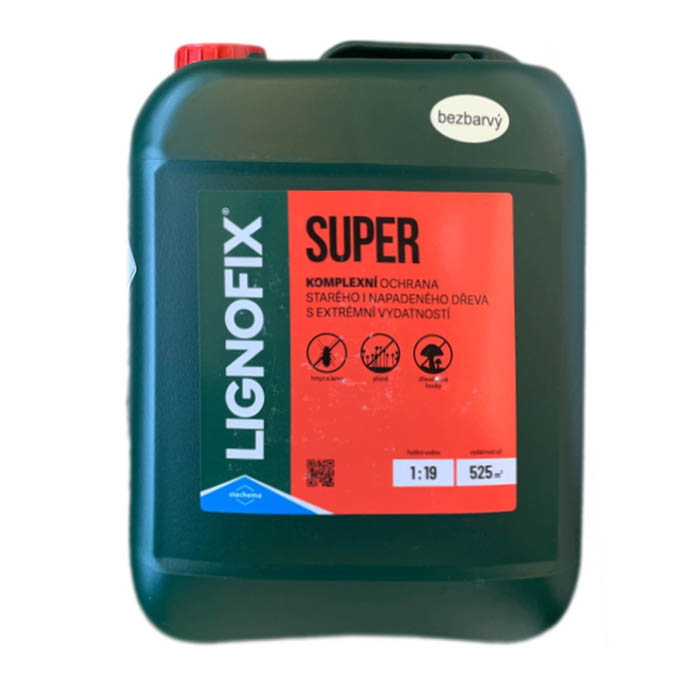 **Lignofix SUPER** je moderní kapalný biocidní koncentrát s extrémně vysokou vydatností, určený k preventivní ochraně dřeva proti dřevokaznému hmyzu, dřevokazným houbám a plísním. Díky možnosti ředění až 1:24 představuje ekonomicky nejvýhodnější variantu pro ochranu velkých ploch krovů a stavebního řeziva. Po zaschnutí se ve dřevě zafixuje a je nevyluhovatelný vodou.