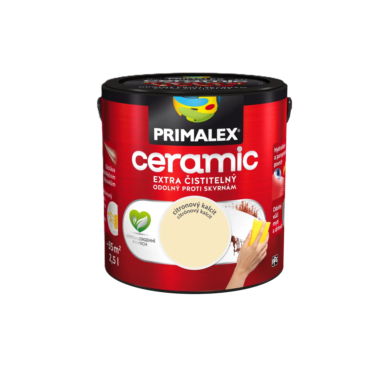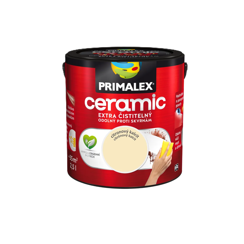 Primalex Ceramic je revoluční interiérový nátěr prvotřídní kvality, který vytváří výjimečně odolný, hydrofobní a paropropustný povrch. Díky inovativním složkám zabraňuje pronikání nečistot do hloubky a svou čistitelností se blíží keramickým povrchům. Je ideální volbou pro vysoce zatěžované prostory.