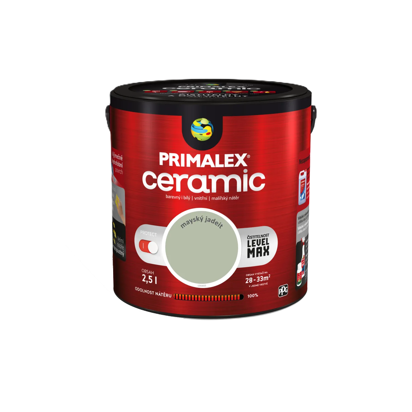Primalex Ceramic je revoluční interiérový nátěr prvotřídní kvality, který vytváří výjimečně odolný, hydrofobní a paropropustný povrch. Díky inovativním složkám zabraňuje pronikání nečistot do hloubky a svou čistitelností se blíží keramickým povrchům. Je ideální volbou pro vysoce zatěžované prostory.