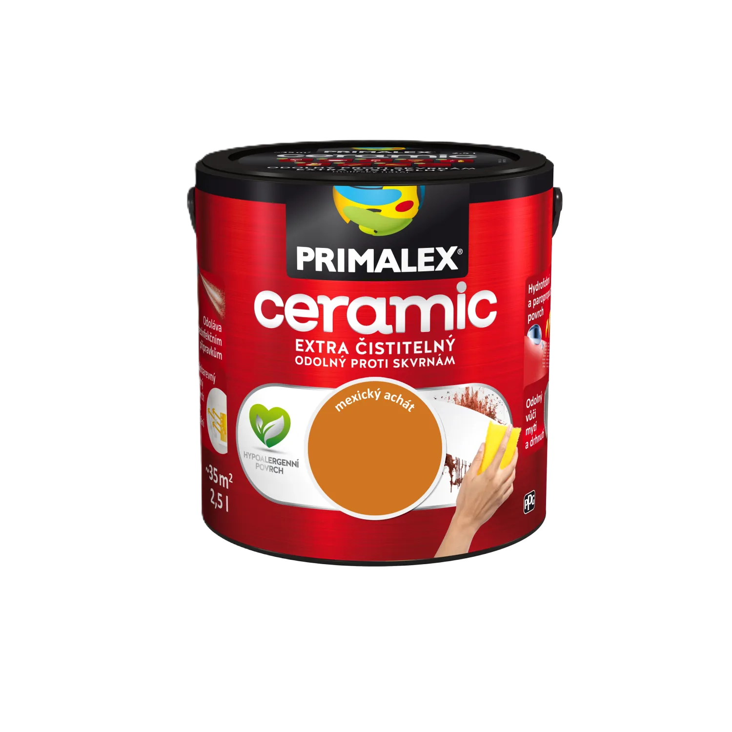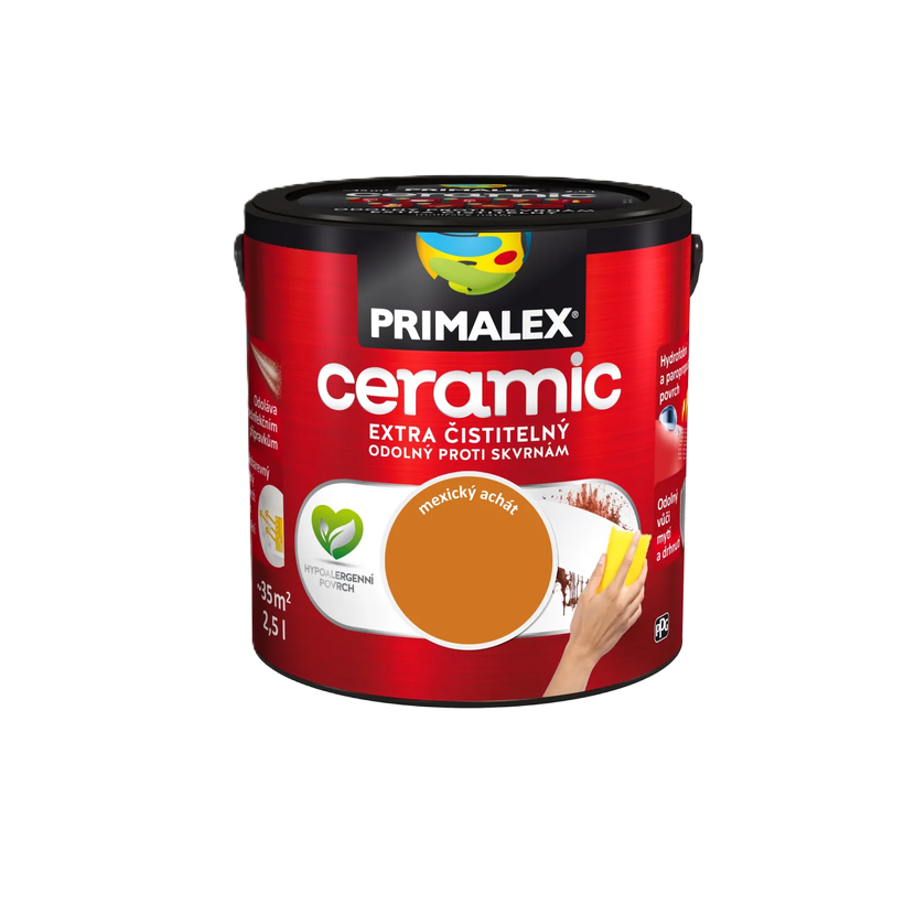 Primalex Ceramic je revoluční interiérový nátěr prvotřídní kvality, který vytváří výjimečně odolný, hydrofobní a paropropustný povrch. Díky inovativním složkám zabraňuje pronikání nečistot do hloubky a svou čistitelností se blíží keramickým povrchům. Je ideální volbou pro vysoce zatěžované prostory.