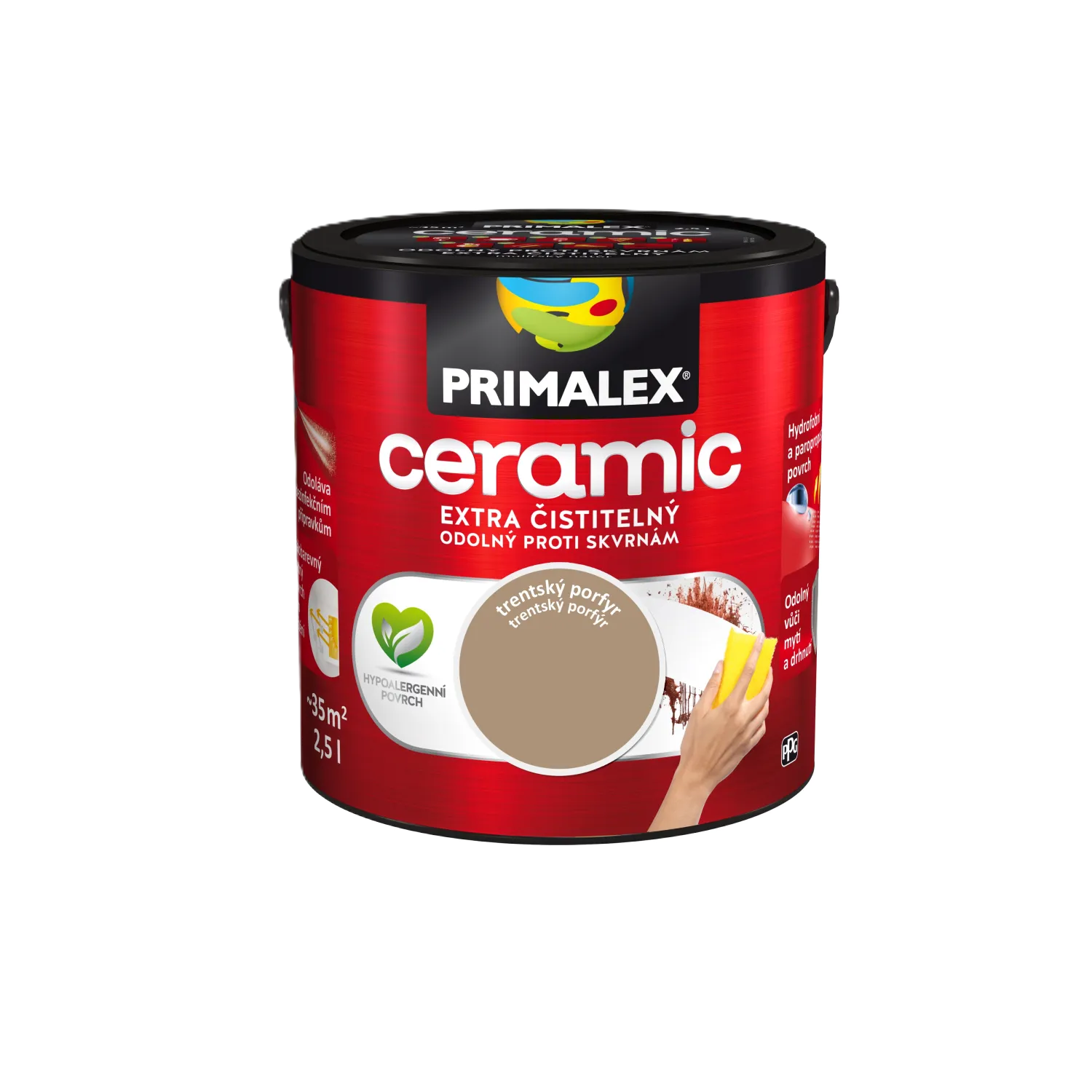 Primalex Ceramic je revoluční interiérový nátěr prvotřídní kvality, který vytváří výjimečně odolný, hydrofobní a paropropustný povrch. Díky inovativním složkám zabraňuje pronikání nečistot do hloubky a svou čistitelností se blíží keramickým povrchům. Je ideální volbou pro vysoce zatěžované prostory.