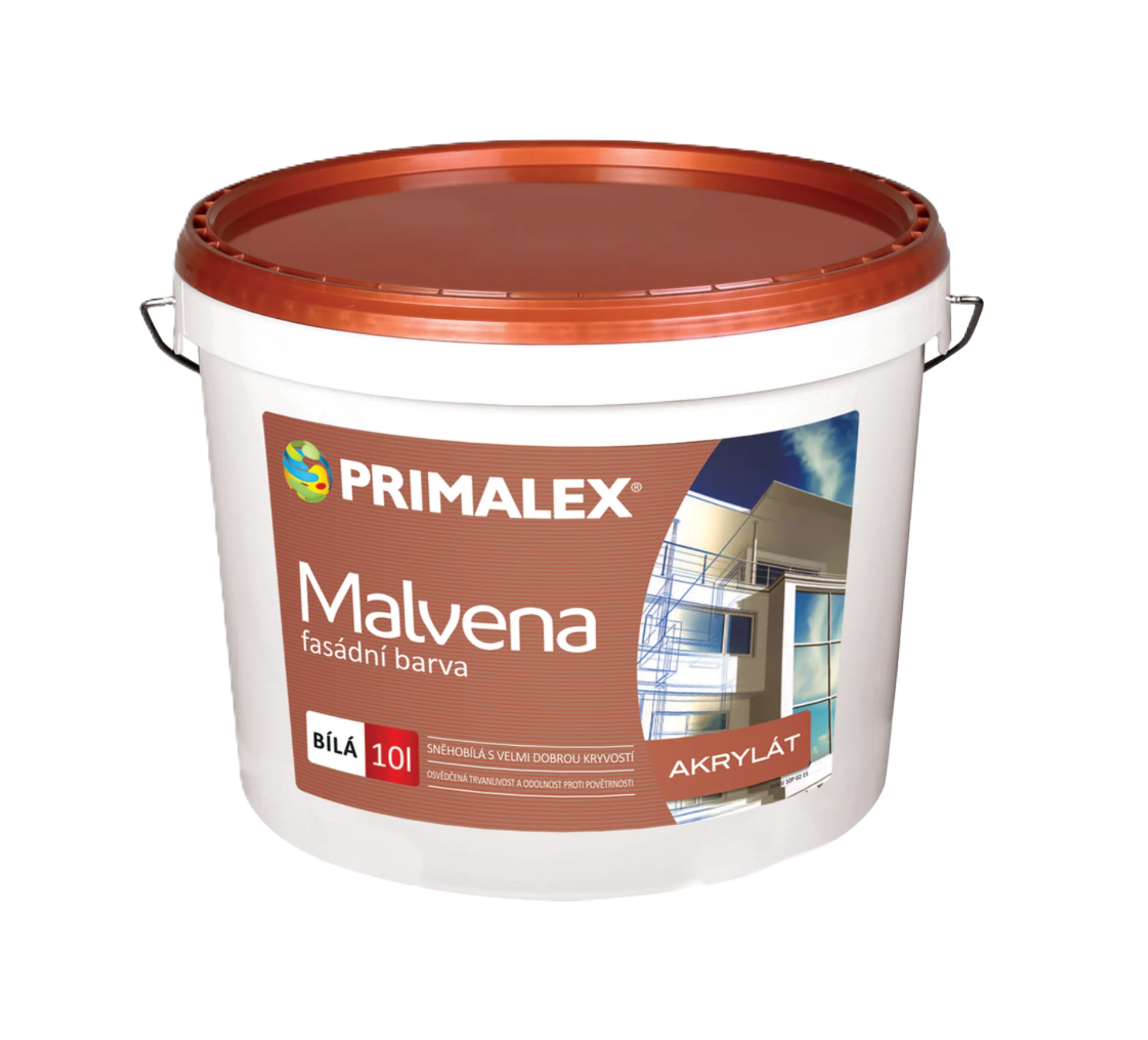 Primalex Malvena je fasádní akrylátová barva s velmi dobrou kryvostí, bělostí a vysokou přilnavostí k podkladu. Nátěr je odolný vůči povětrnostním vlivům, mrazuvzdorný a zároveň prodyšný (paropropustný). Je určena pro venkovní nátěry vápenných, vápenocementových a břízolitových omítek, zdiva, betonu či pórobetonu. Díky své kvalitě je ideální pro rodinné domy, hospodářské objekty i komerční budovy.