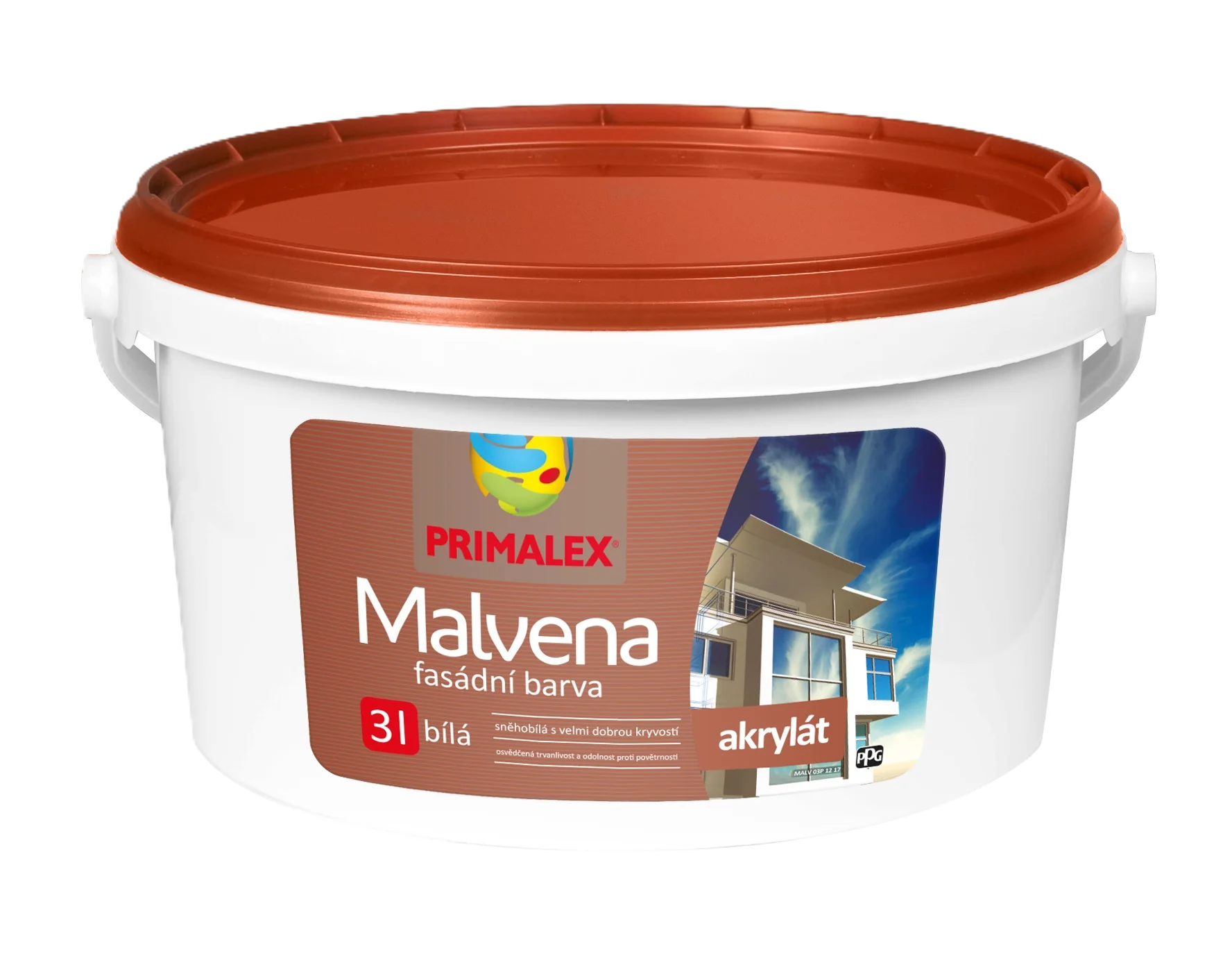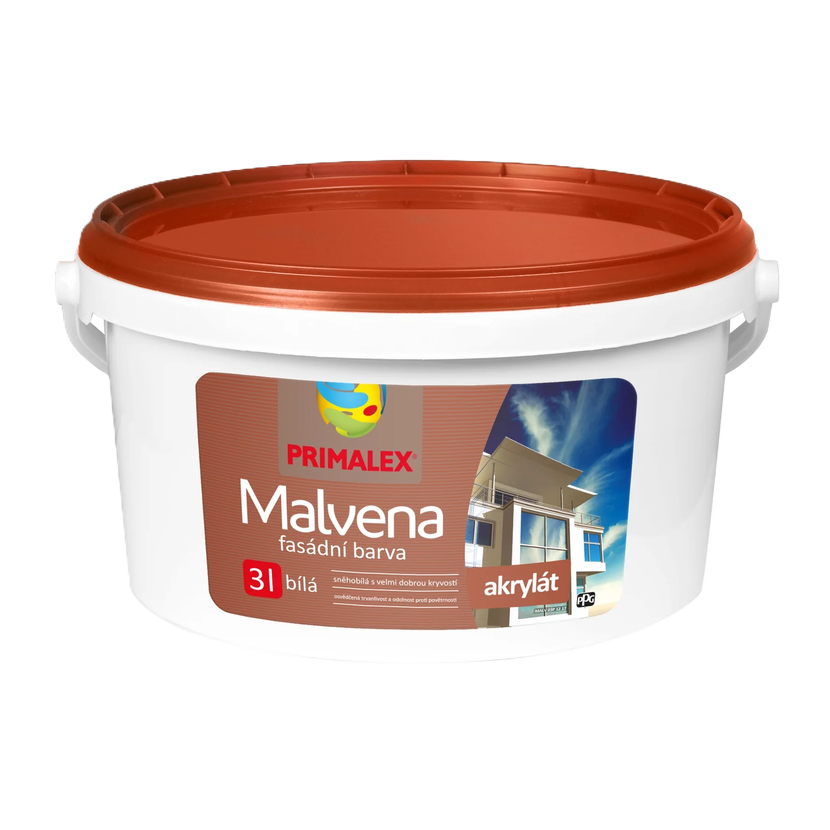 Primalex Malvena je fasádní akrylátová barva s velmi dobrou kryvostí, bělostí a vysokou přilnavostí k podkladu. Nátěr je odolný vůči povětrnostním vlivům, mrazuvzdorný a zároveň prodyšný (paropropustný). Je určena pro venkovní nátěry vápenných, vápenocementových a břízolitových omítek, zdiva, betonu či pórobetonu. Díky své kvalitě je ideální pro rodinné domy, hospodářské objekty i komerční budovy.
