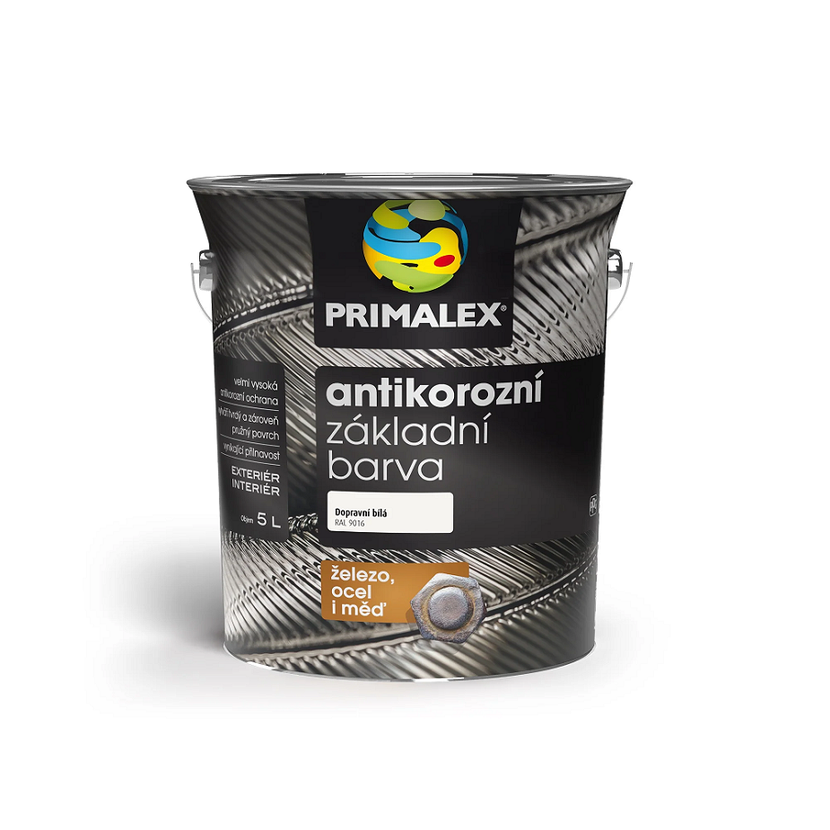 PRIMALEX ZÁKLADNÍ BARVA ANTIKOROZNÍ je tradiční syntetická barva určená k základním nátěrům ocelových a železných povrchů ve vnitřním i venkovním prostředí. Díky obsahu antikorozních pigmentů poskytuje kovu účinnou ochranu proti rzi. Vyznačuje se výbornou přilnavostí k podkladu a vytváří ideální vrstvu pro následné vrchní barvy.