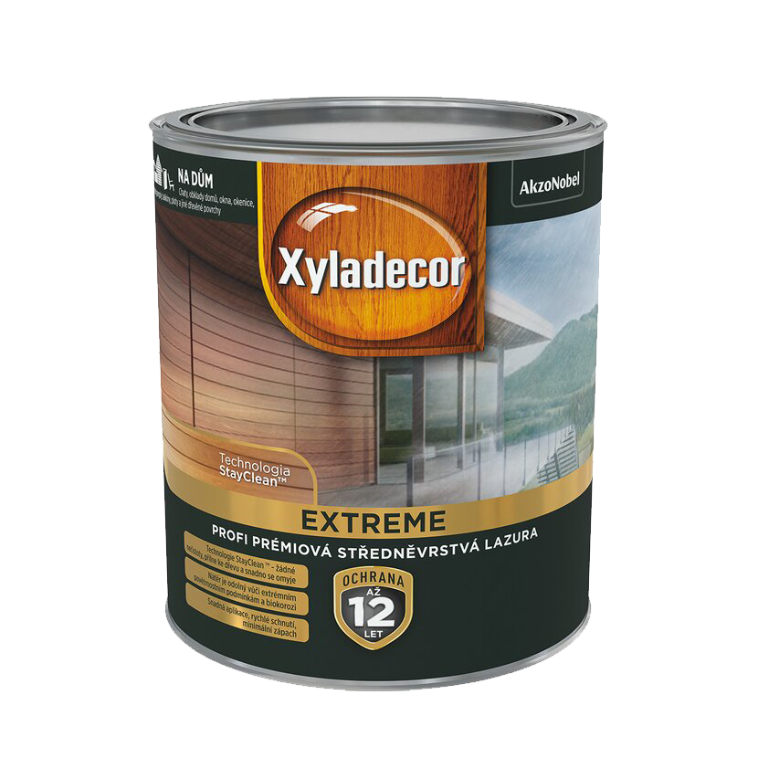 Xyladecor Extreme je prémiová tenkovrstvá lazura na vodní bázi pro použití v exteriéru. Díky unikátní technologii vytváří vysoce elastický film, který chrání dřevo před nepřízní počasí, UV zářením a dřevokaznými houbami. Je ideální pro dřevěné fasády, podbití, ploty a zahradní domky, kde je vyžadována extrémní životnost nátěru.